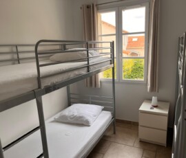 Ontspan in deze gezellige slaapkamer met twee stapelbedden, ideaal voor een comfortabel verblijf voor meerdere gasten. Geniet van een aangename temperatuur dankzij de airconditioning, perfect om te ontspannen na een dag vol avonturen.