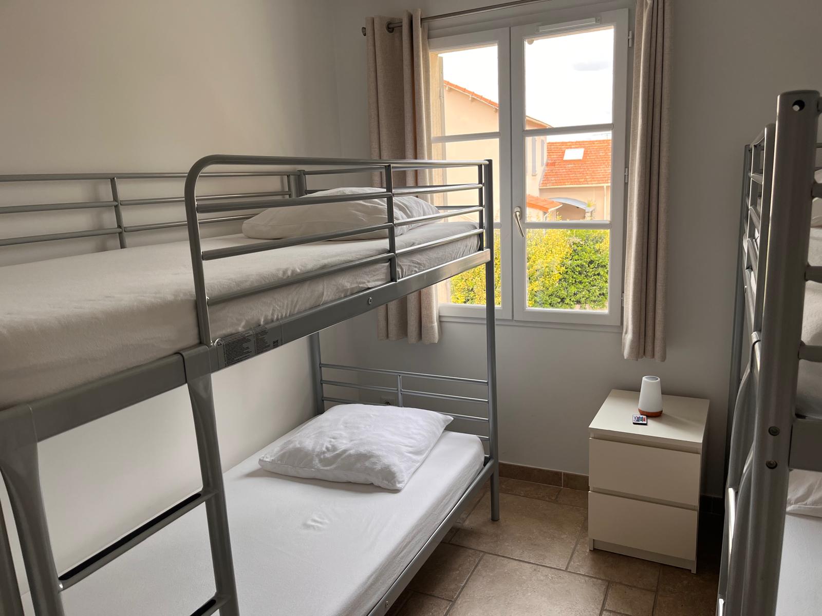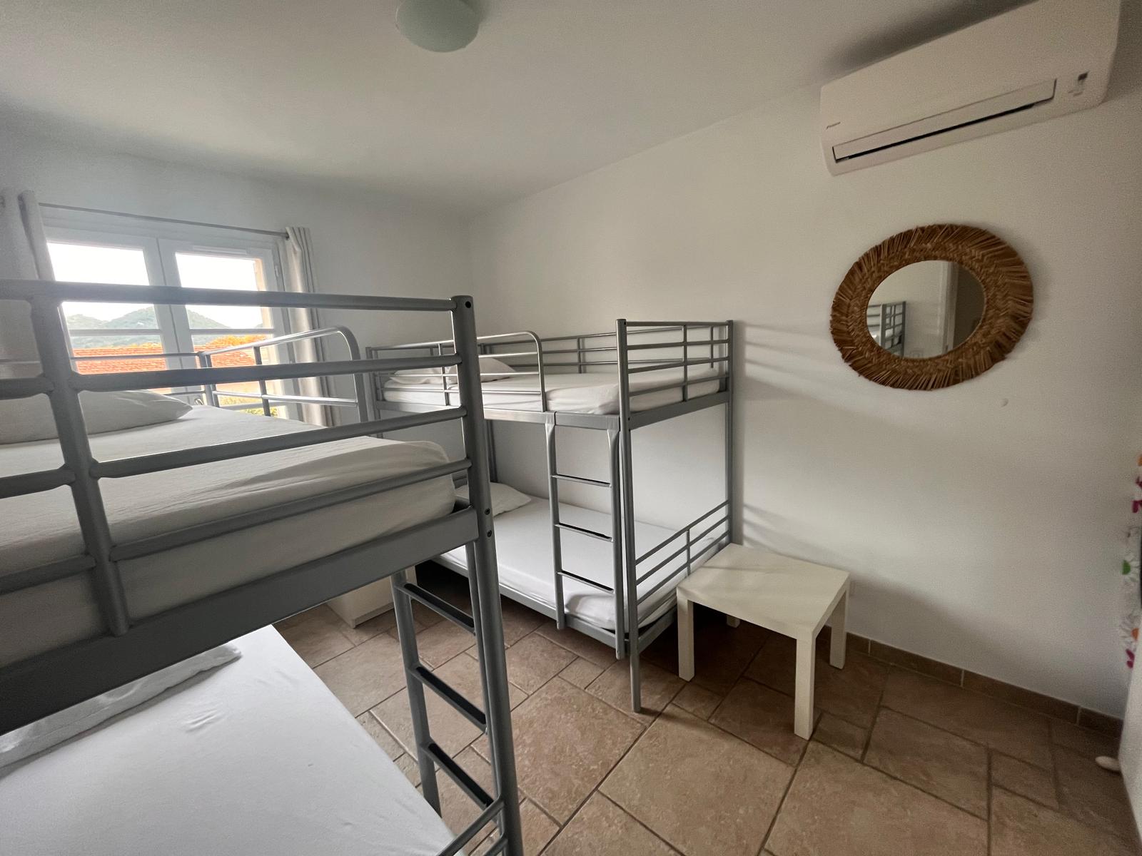 Ontspan in deze gezellige slaapkamer met twee stapelbedden, ideaal voor een comfortabel verblijf voor meerdere gasten. Geniet van een aangename temperatuur dankzij de airconditioning, perfect om te ontspannen na een dag vol avonturen.